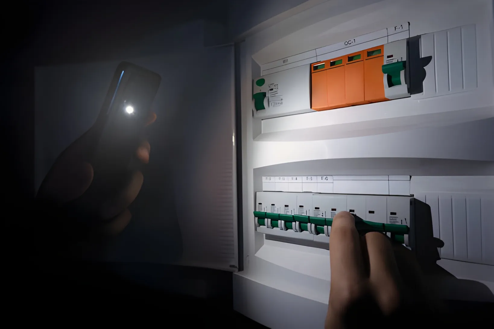 After resolving the problem, the user can reset the breaker from a smartphone or another device, restoring normal operation.